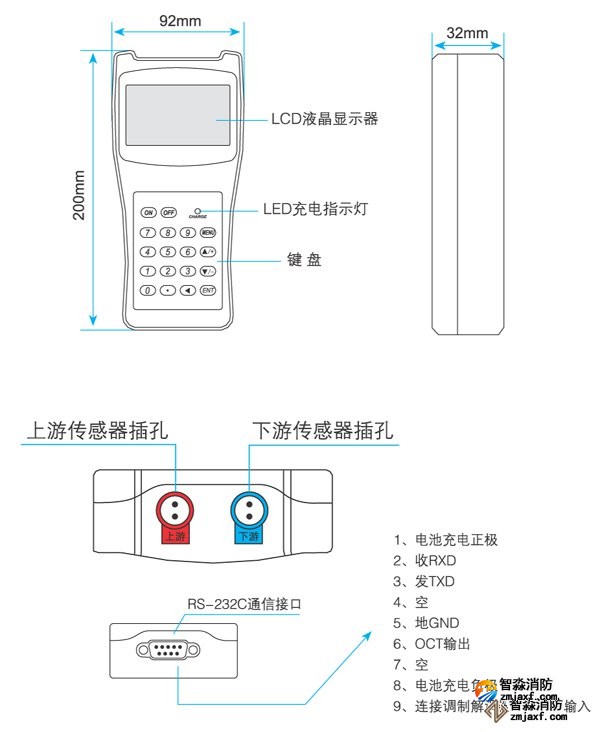 超聲波流量計測量管徑范圍:0mm~300mm;WWW.XFJCYQ.COM精度:±1%用于檢測消火栓系統和水噴淋系統的給水量以及消防豎管的流量分配。